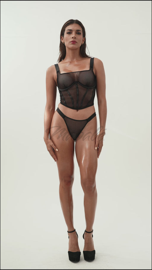 Mapalé Rock Star Ensemble Lingerie 3 Pièces Noir Brillant