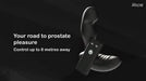 Le silicone doux est luxueux et confortable, tandis que la conception ergonomique garantit que le Ride reste parfaitement en place. Grâce à la télécommande sans fil (portée jusqu'à 8 mètres), vous gardez toujours le contrôle – ou vous laissez votre partenaire décider jusqu'où vous allez.
